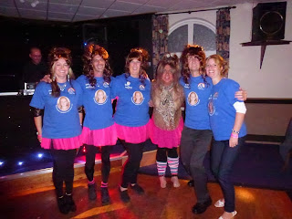 Then it was on with the night....bit of banter wiv the lovely Bevettes and then on to Bev's Bingo....Bingo with a twist....now what makes me laugh in a game of bingo is that when I say 'All the 4s' doesn't necesserrilly mean 44 - that's the twist.....but you should hear the feckers shoutin, tuttin and abusin me......for fucks sake....yer playin for a packet of feminin wipes an a pregnancy test......I love it................so do they deep down.....I chowze the hunkiest man there to shake his balls for the bingo....the garjus Chris Whiteley.....known in these parts as Twice Nightly Whiteley......pics of us to follow.....I turned me back for one minit then there before me were visions of lovelyness....Bevette clones.....how bloody good do they look....they are the Katy Husky Huddle who do great work for the charity along with their bewtiful husky doggies....they were amazing!...